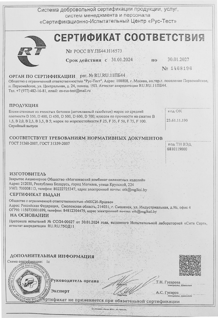 Газобетонные блоки Могилевский КСИ D625 отличаются высокой прочностью и долговечностью. Они способны выдерживать значительные нагрузки, что делает их идеальным выбором для строительства несущих стен и других конструкций.